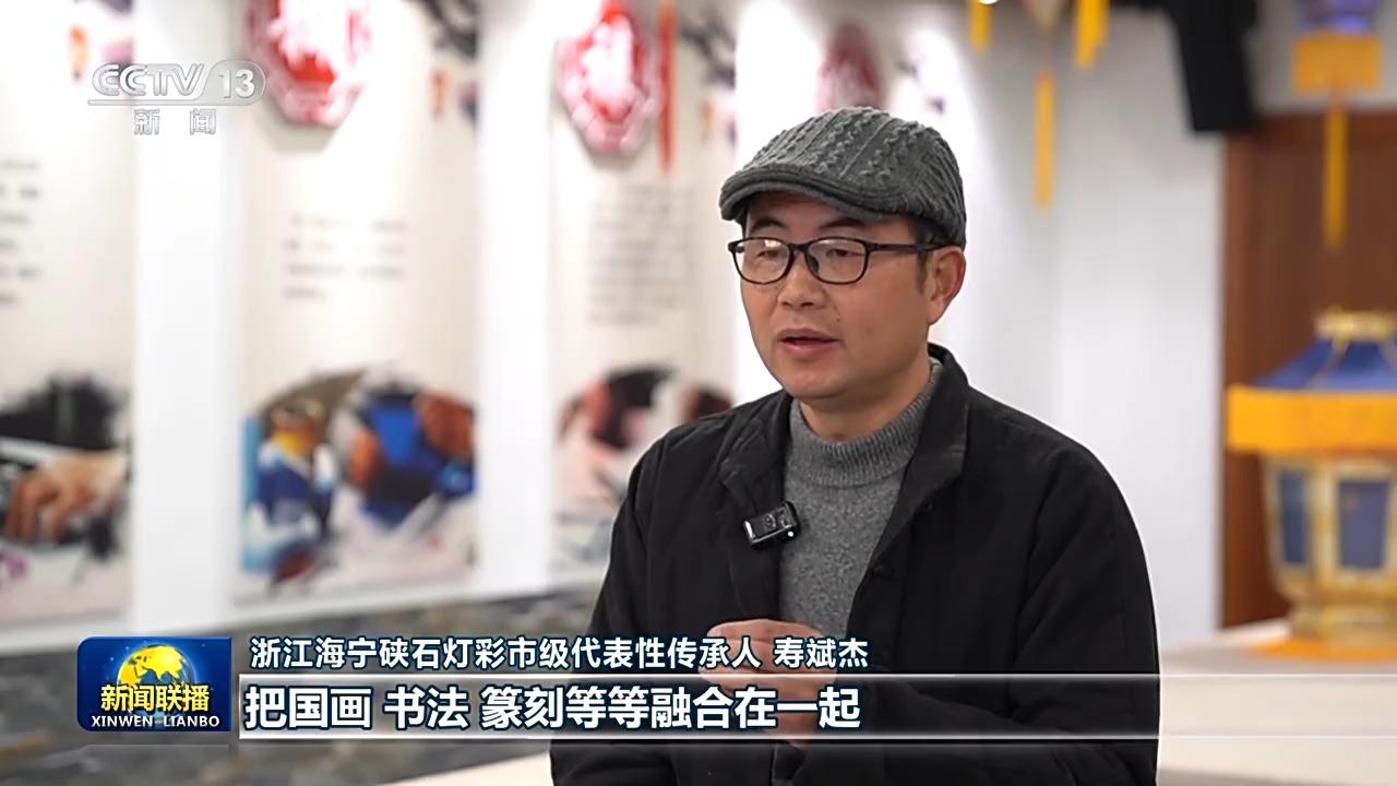 浙江海寧硤石燈彩市級(jí)代表性傳承人 壽斌杰:主要是通過(guò)針刺把國(guó)畫、書法、篆刻等融合在一起。在夜晚的燈光的透射下,會(huì)達(dá)到一種非常奇幻的,而且是萬(wàn)眼羅燈的效果。